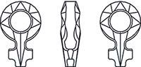 Фольгированные ювелирные камни Swarovski в форме женского символа. Эти кристаллы используют для создания украшений в технике сутажной вышивки, при работе с полимерной глиной или мастикой Ceralun. Вклеивают в изделия из кожи и дерева, оправляют в серебро и другие металлы. Оплетают бисером и используют для вышивания вместе с нитями, бусинами и стразами других разновидностей.