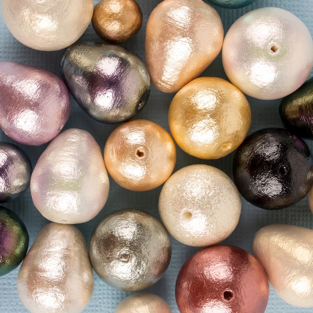 Cotton Pearls, он же хлопковый жемчуг — бусины с текстурой, которая напоминает смятую ткань или бумагу. Отличительная характеристика — жемчужный цвет, из-за которого бусины и получили свое название.