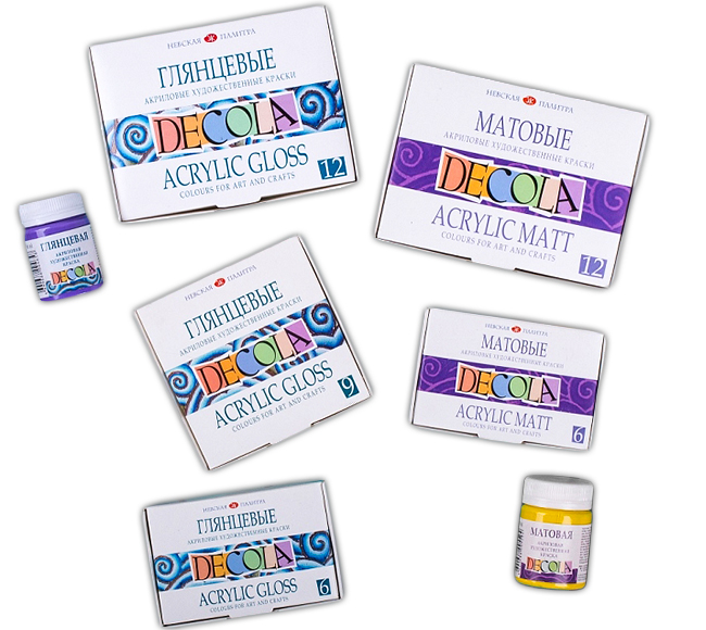 Краску можно купить оптом и в розницу, выбирая отдельные цвета либо наборы по 6-12 оттенков. Для создания объемных рисунков специально разработаны контуры Decola с эффектом металлика и без. Добиться менее насыщенного оттенка можно при помощи растворителя для акриловых красок, который позволяет получать пастельные тона. Для основы подойдут любые ткани – хлопок, шелк, лен, батист, шерсть. Краски подходят и для работы с синтетикой.