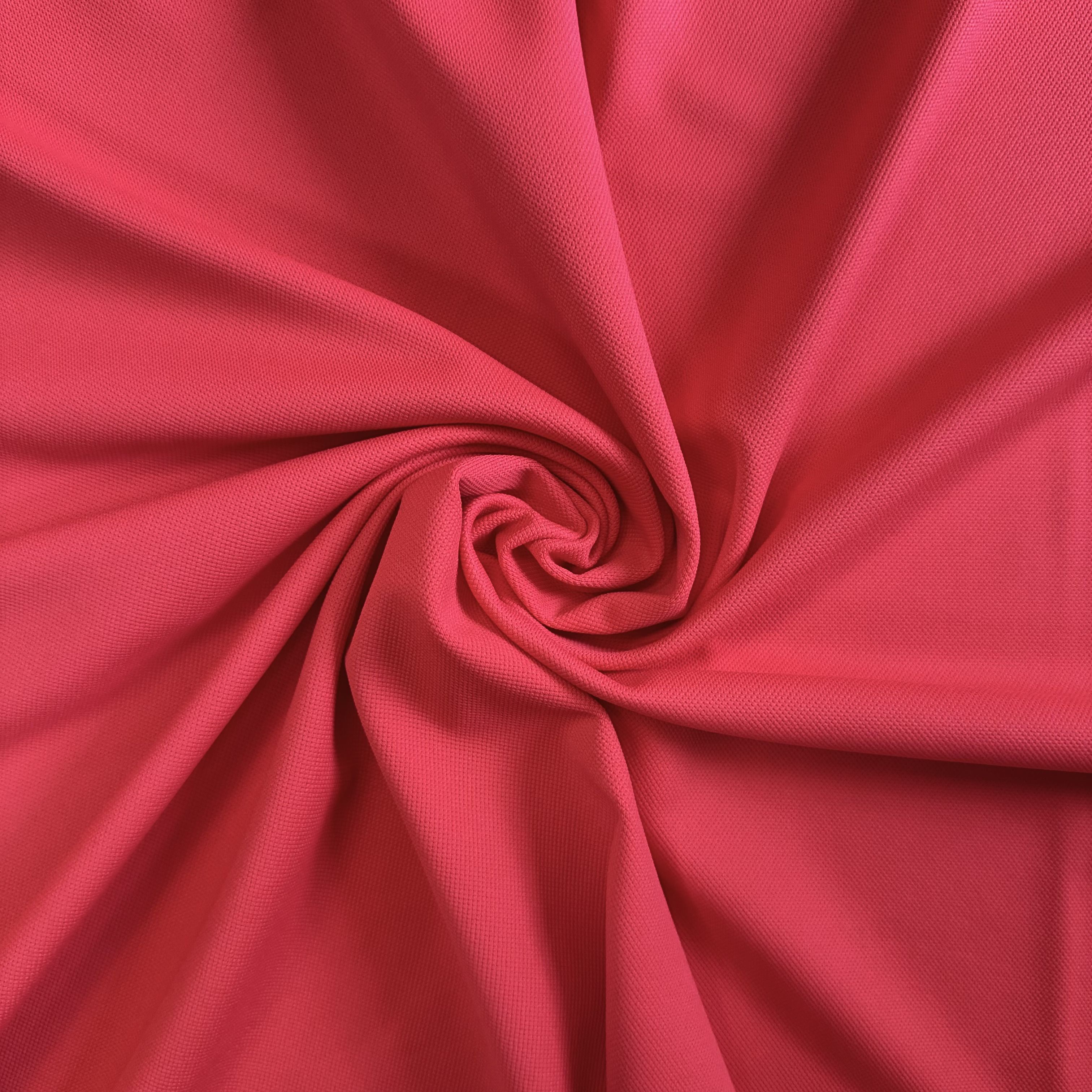 Фактура у пике 3D особенная: микрорельеф из мелких волн создает ощущение глубины и объёма. Поверхность не плоская, но и не кричащая — она мягко переливается при любом освещении. При движении тела ткань как будто вступает в диалог с пространством: меняет тон, оживляется, играет на свету. Отсюда и сцепка с телом — она не статична, а живая. Цвета раскрываются неожиданно: фиолетовый уходит в лаванду, зелёный приобретает мшистую глубину, красный становится насыщенным и пряным, синий — прохладным и свежим, а оранжевый — объёмным и согревающим. Это ткань, где цвет не отделён от рельефа, а работает с ним в унисон.