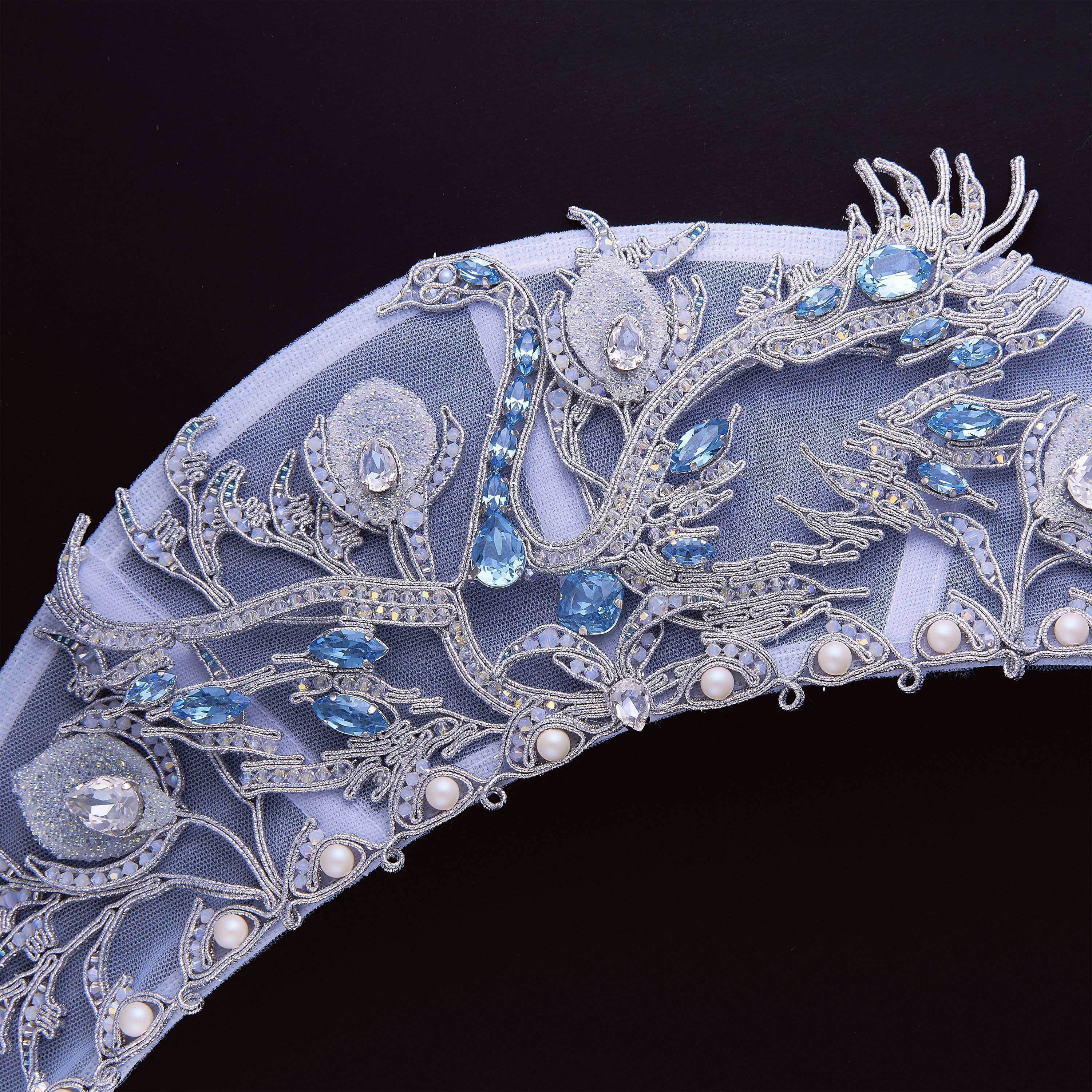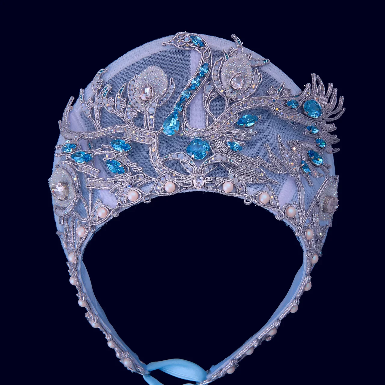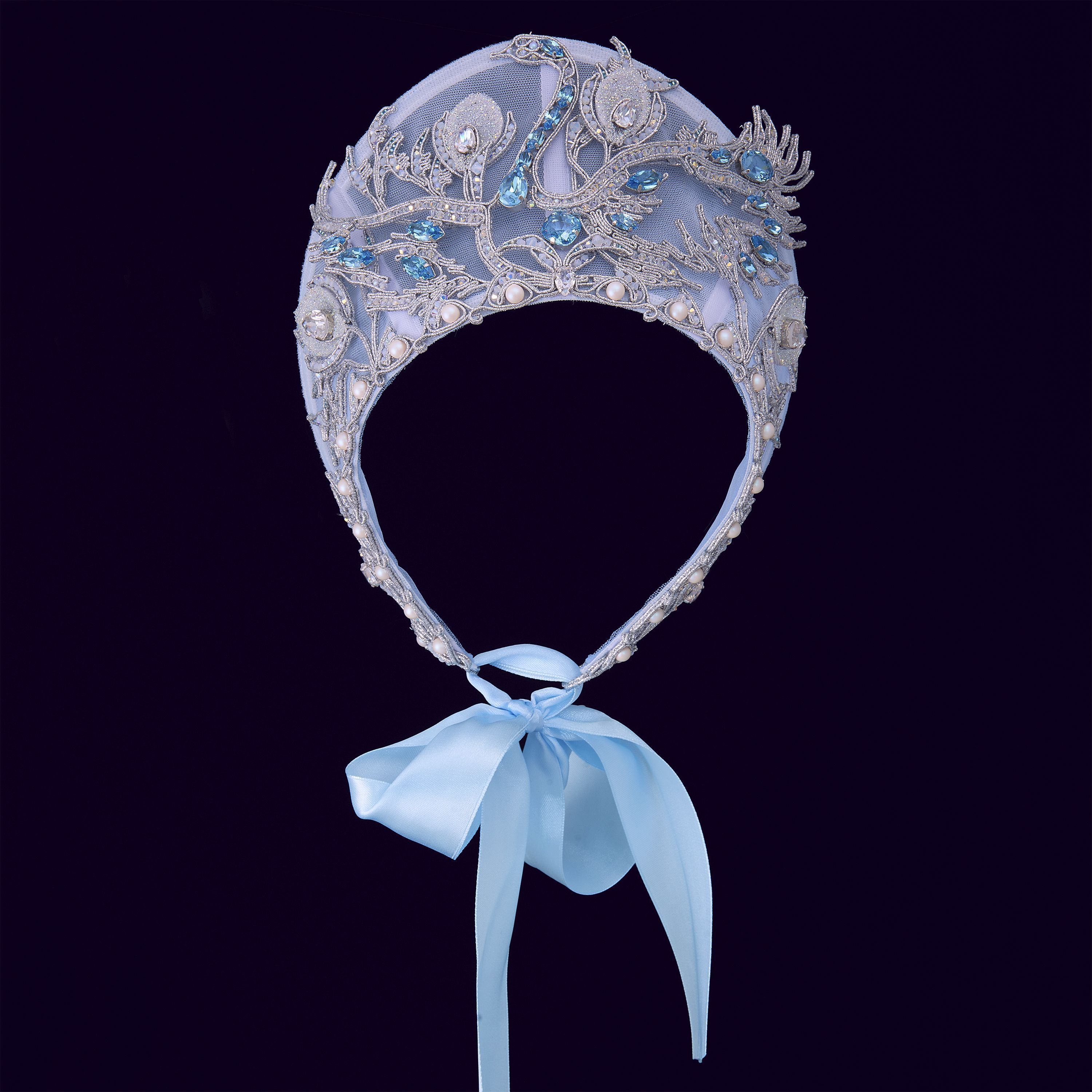 вшиты бусины, кристаллы и жемчужины. А затем уже закреплена на кокошнике,