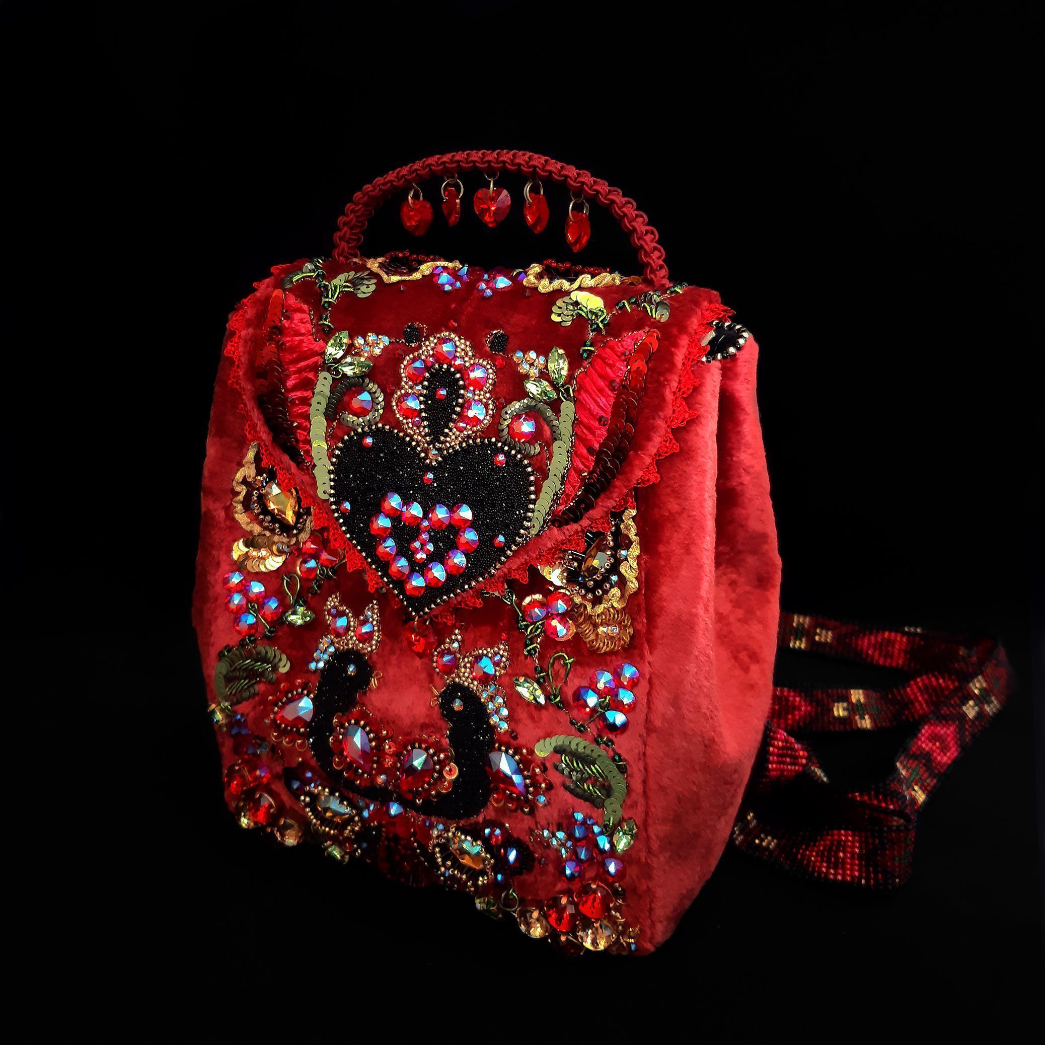 Орнамент на лямках рюкзака так же подчиняется основной идее и содержит как растительные узоры так и небольшие сердечки.