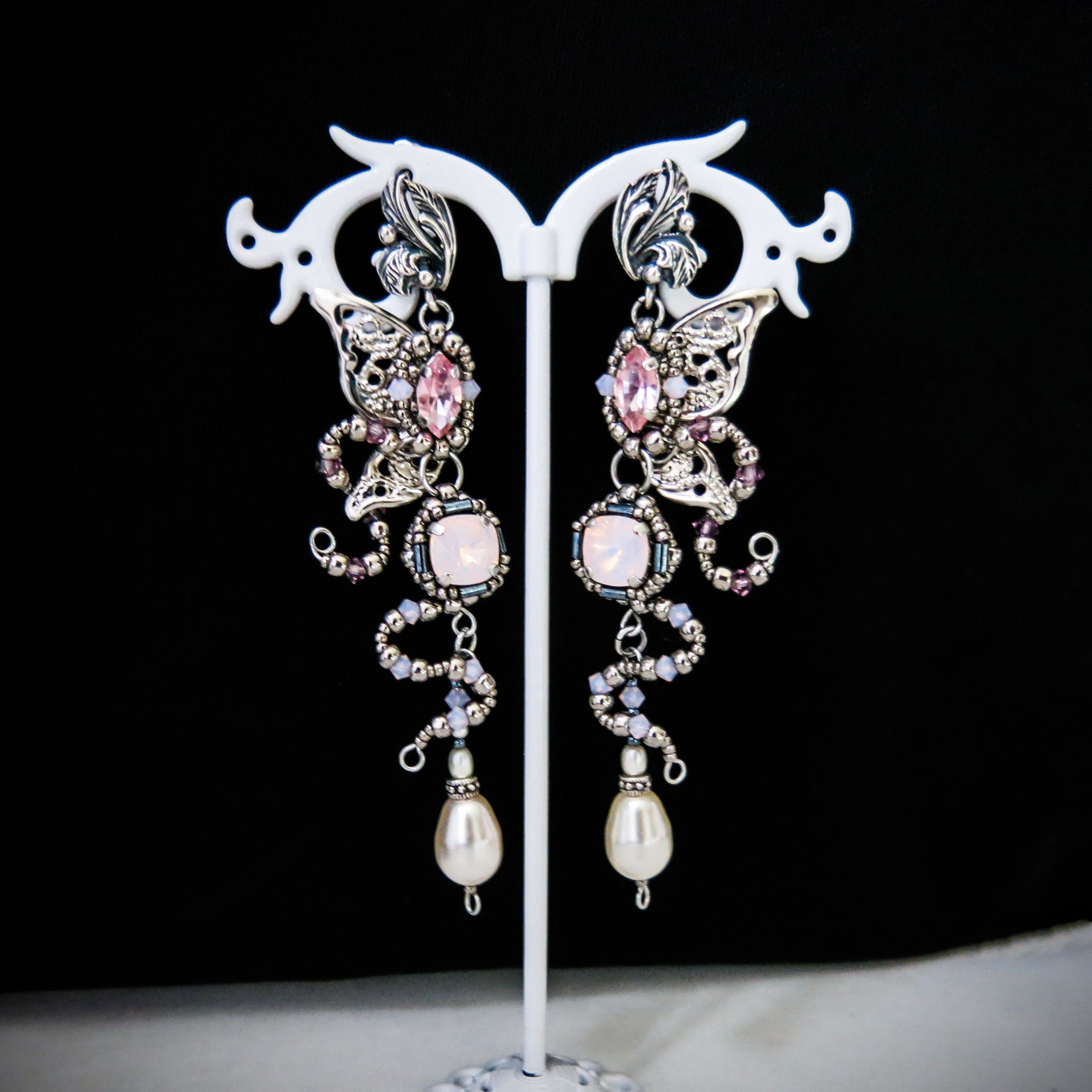 Серьги «Butterfly» - это состояние, очень похожее на чувство влюбленности. Отражение момента, когда вдохновение достигает своего пика. Воздушная легкость и блеск кристаллов в нежных оттенках розового передают сказочное настроение, в тоже время крылья бабочки с выходящими из нее витиеватыми элементами символизируют душу, плененную любовью.
