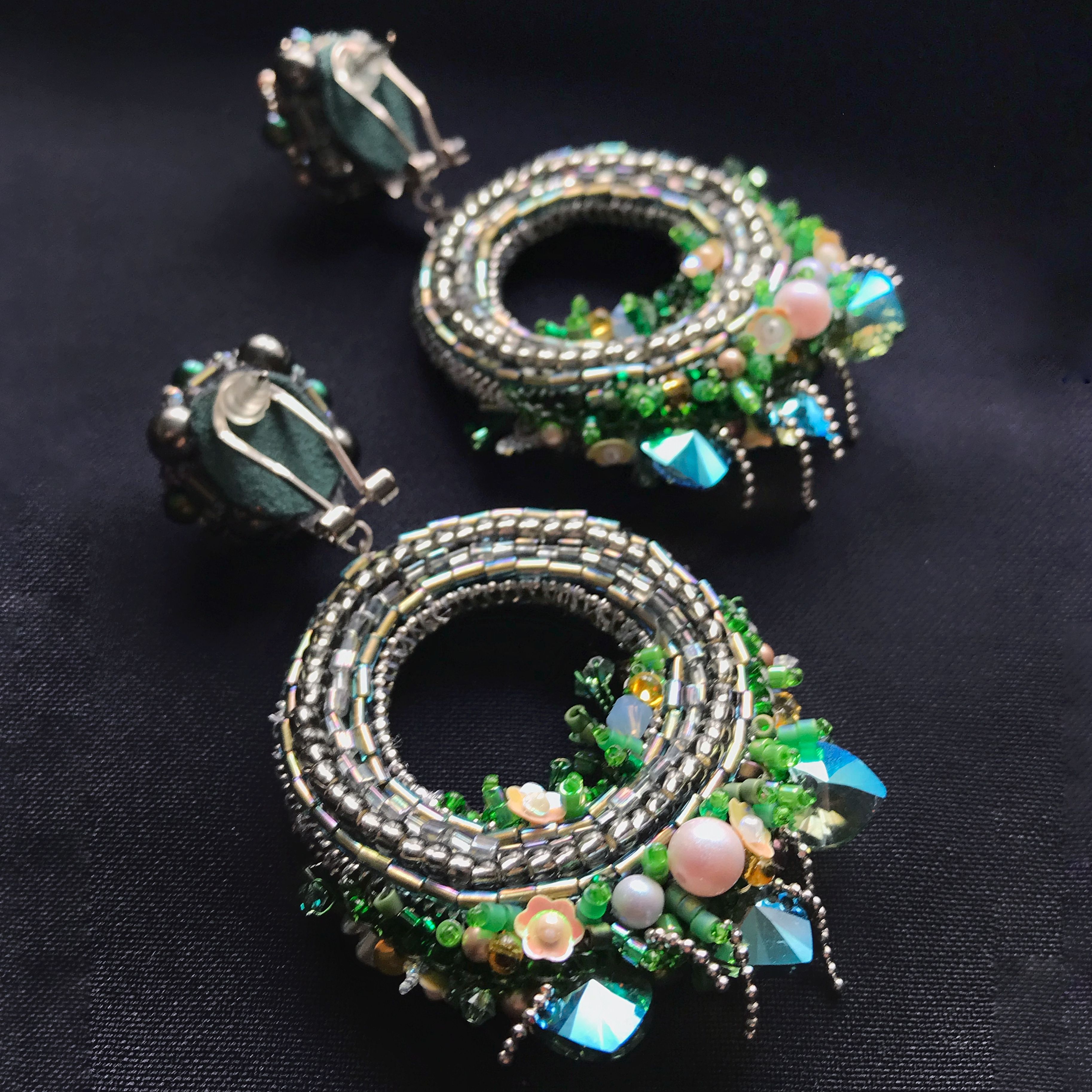 Эти серьги отражение моих эмоций, яркие но нежные. Лицевая сторона показывает расцвет чувств и буйство красок, все то чем одаривала нас компания долгие годы. Изнанкой я решила показать, что чувства не забудутся никогда, что в сердце не останется пустота. Чувства померкнут, но воспоминания о них останутся, как о самом первом, самом важном чувстве.