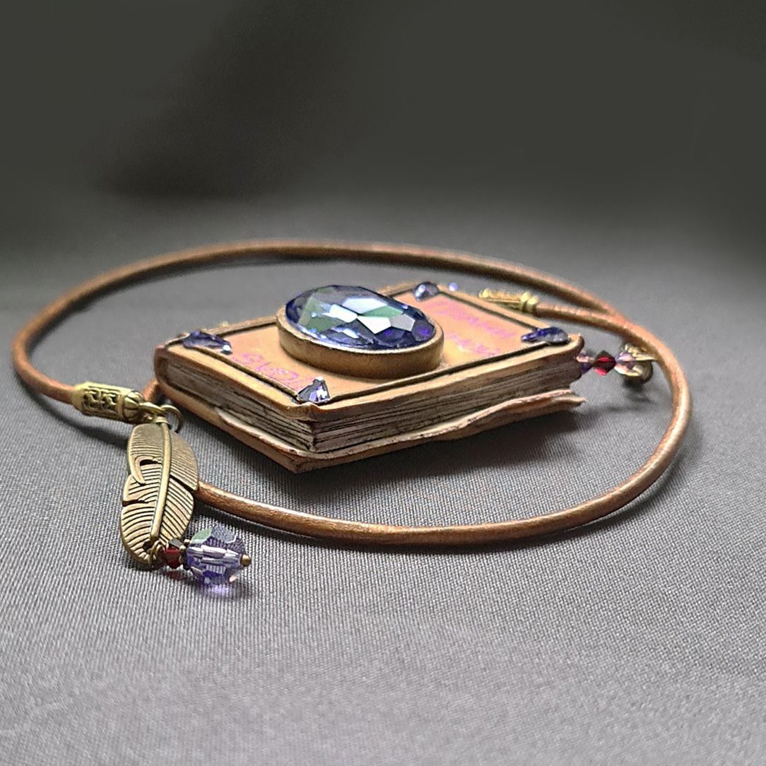 Первый, юбилейный том «Грани Вселенной .evoli» должен выглядеть именно так. Солидно, с роскошным кристаллом в центре, который так загадочно сверкает этими самыми гранями. В зависимости от образа, кулон можно носить и перевернутым, так он будет сиять россыпью мелких страз ,украшающих завитки филиграни.  Только услышав название темы, я сразу представила, что это название книги. Сборник волшебных сказок про кристаллы. И обложка  завораживает, хочется открыть и почитать. Узнать, что там написано и рассмотреть небрежно вложенные чертежи между страниц…
