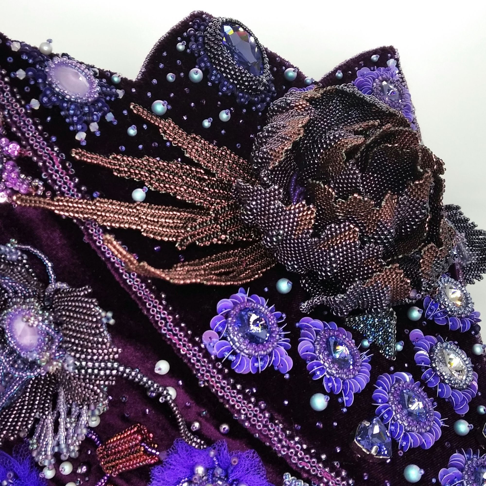 Здесь стихи Гумилева и Лорки звучат, как шаманские заклинания. В облаках парят драконы, а по земле бродят девы-птицы.  Причудливые цветы распускаются повсюду, и в каждом лепестке сокрыты тайны мироздания. Фиолетовый, лиловый, пурпурный, сиреневый - воплощение мистики и магии в цвете. Путеводные звезды кристаллов, колдовство мелкого бисера и пайеток, царственность бархата и  загадочный блеск жемчуга. Мой уголок Вселенной - сказочный мир на краю света, сотканный из творчества и волшебства.