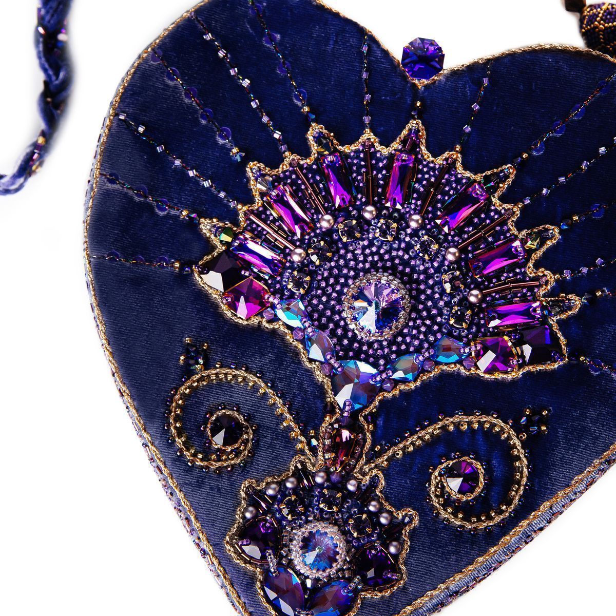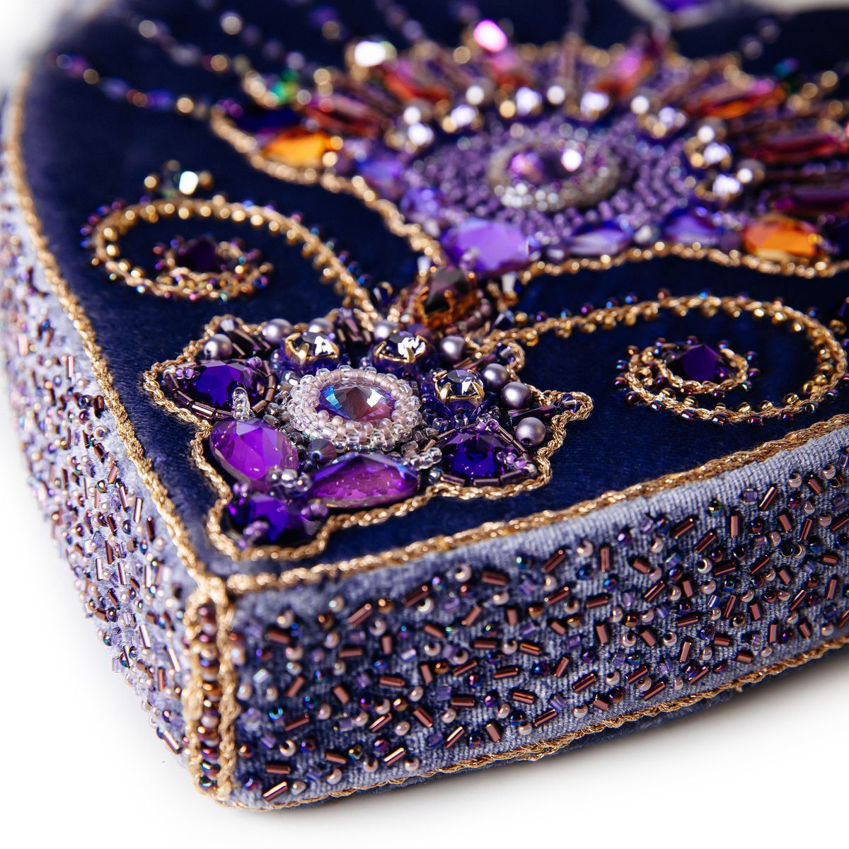 В сумочке «.evoli в моём сердце» кристаллы от .evoli собрались в один благоухающий цветок, который расцвёл на бархатном сердце, чтобы донести все нюансы цветовых оттенков лавандовых полей, запахи множества мелких цветочков сирени и тепло сказочного благоухания роз.