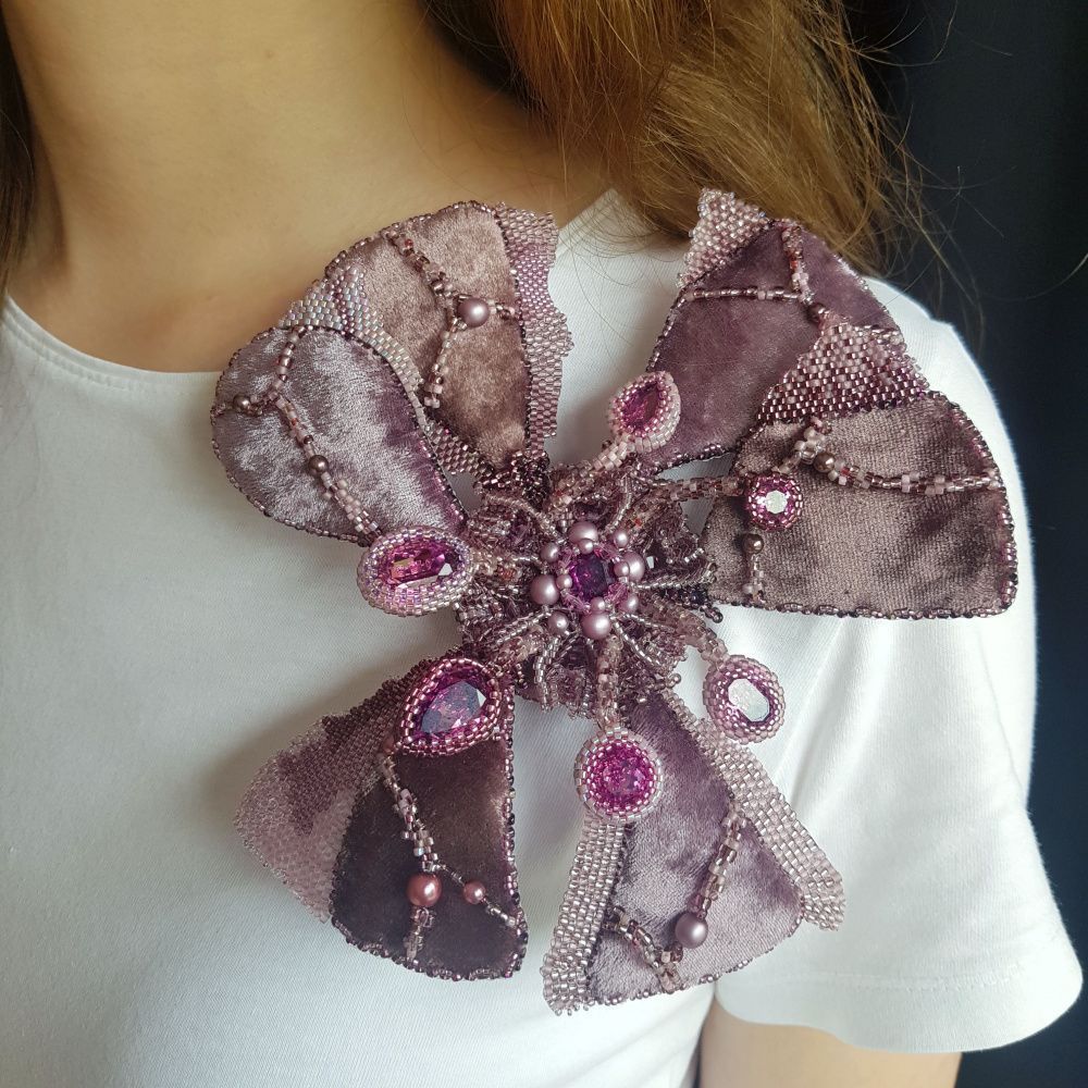 вариация на тему «вышитая бархатная брошь», куда я внесла элементы в технике