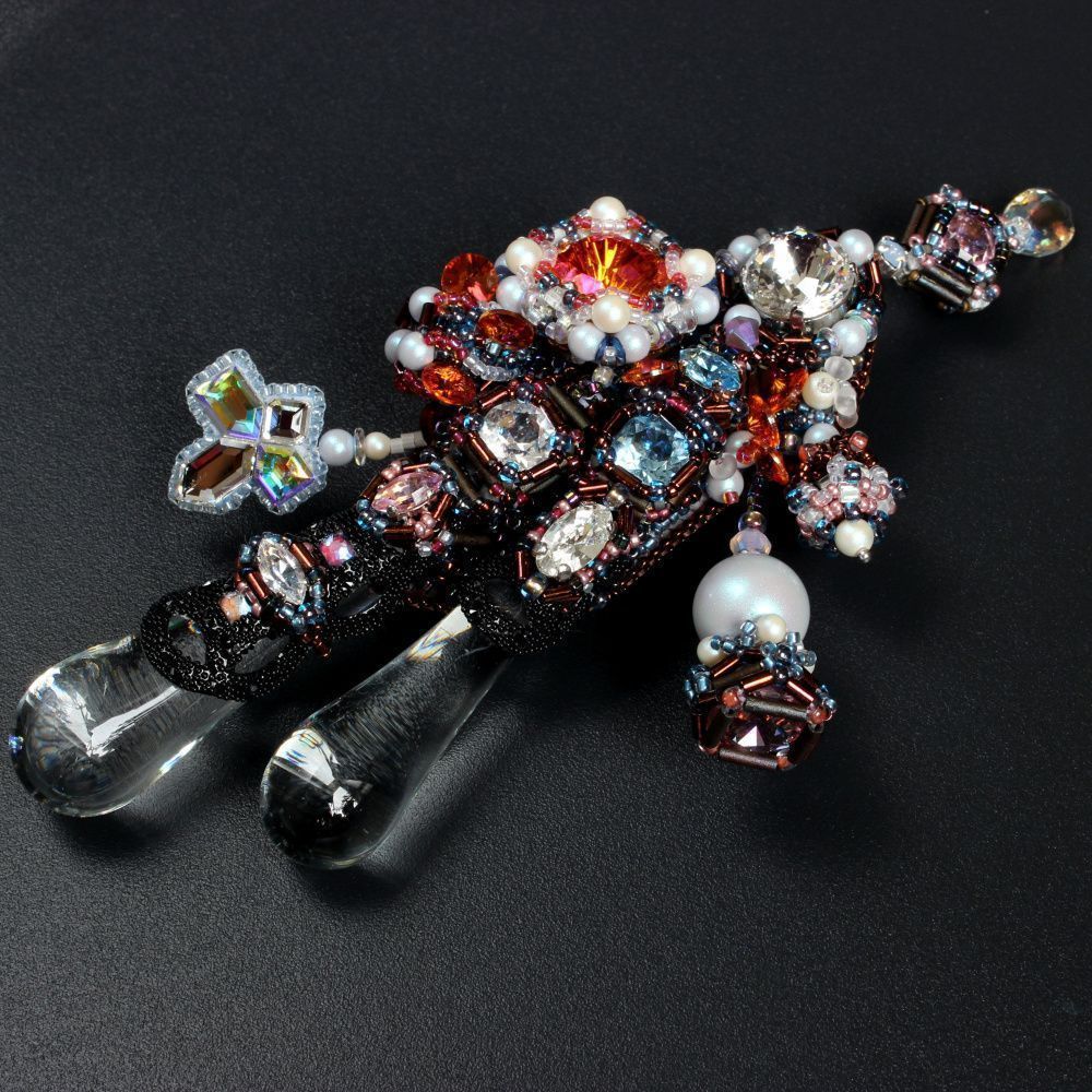 Дома отмытые стекляшки оказались хрустальными подвесками с люстры времен СССР и были в идеальном состоянии. Они и этот случай вдохновили меня на создание броши «Тайный сад».