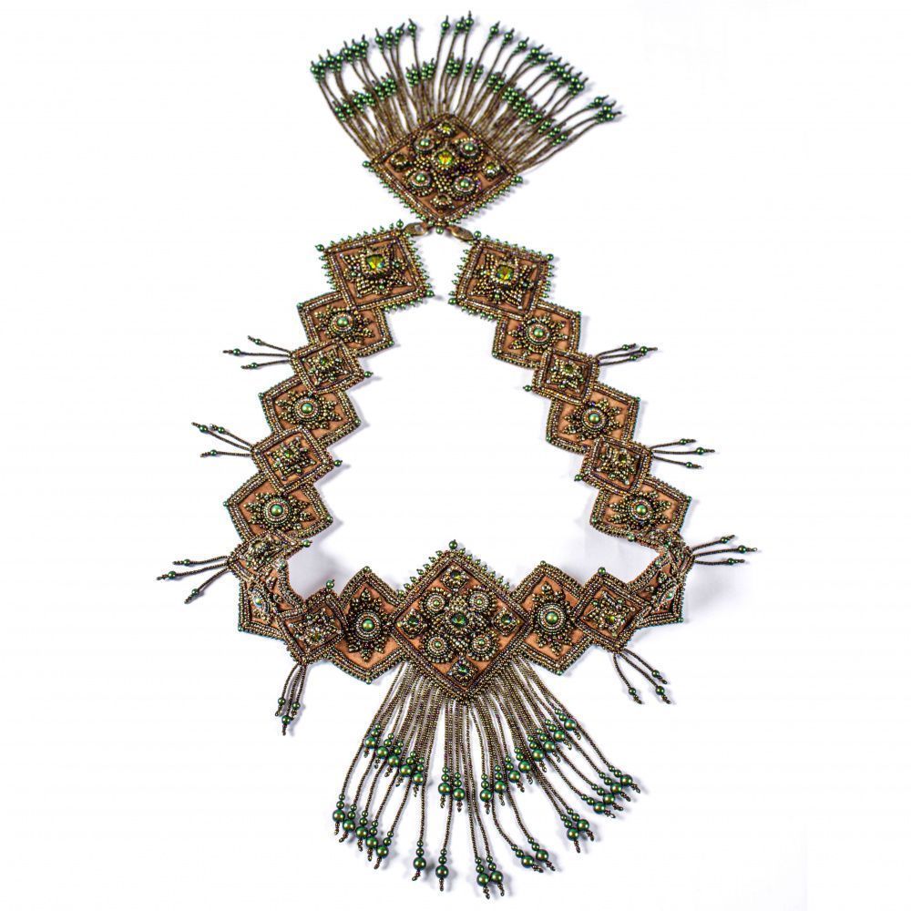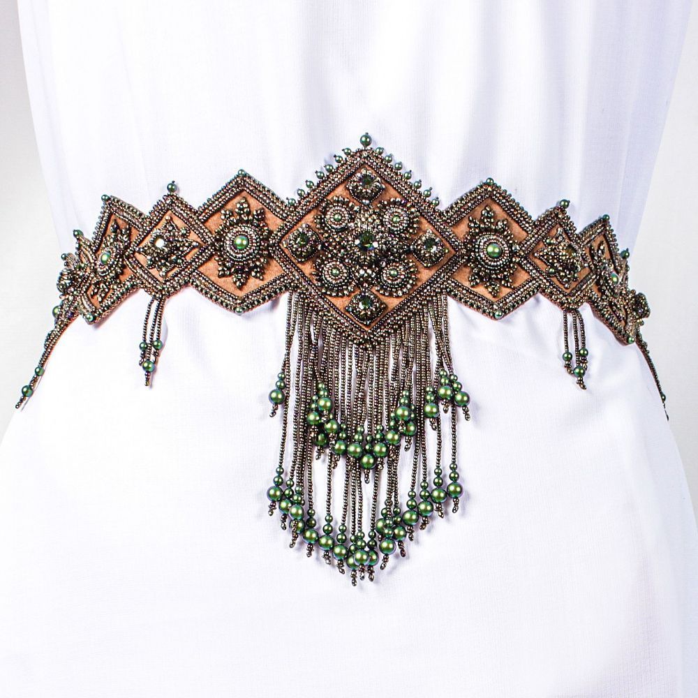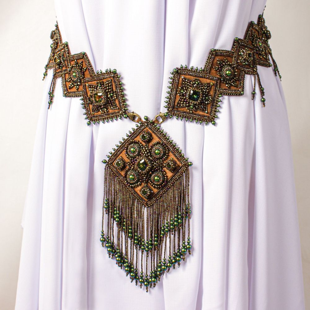В Древней Руси женщины носили обережные пояса, которые защищали и давали им силу, поэтому я решила сделать такой пояс. Бросилась в работу как в омут, хотя было очень много сомнений и страхов. Работа показала свой характер. Была капризна. Вызывала много разных эмоций, но не смотря на все сложности я продолжала ее делать. Поэтому пояс получил название Каприз. Закончив работу я поняла, что во мне открылись новые грани творческих возможностей. Я преодолела страх, сомнения и неверие в себя, как в мастера. Теперь я знаю свой путь.