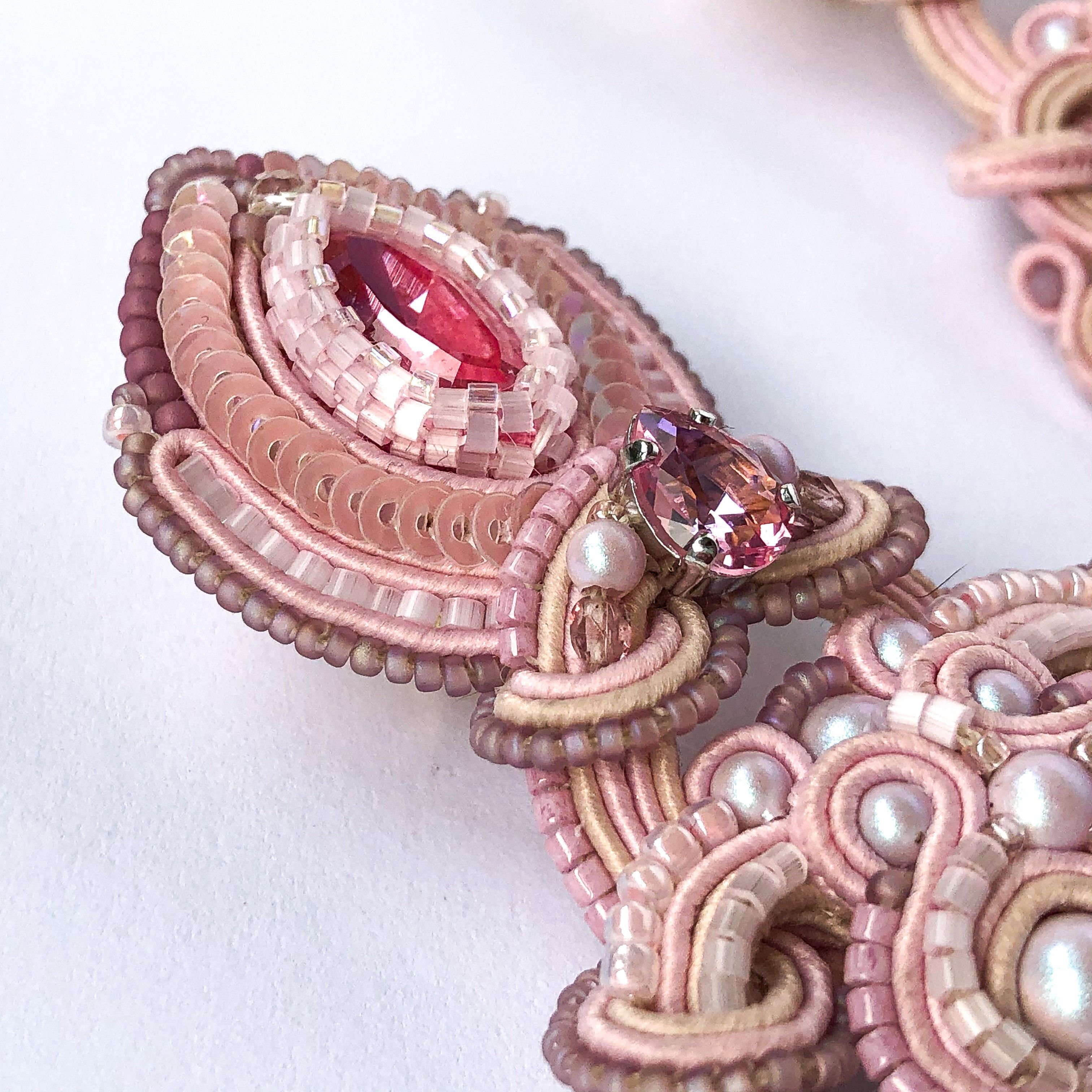 Блестящие нежные кристаллы словно искорки разгорающиеся в наших сердцах, сутажные завитки будто тёплые объятия. Цветовая палитра говорит сама за себя.