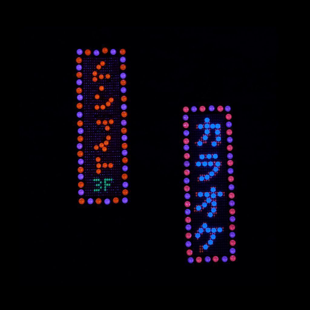 Несколько десятилетий назад фантасты в Necromancer, Cyberpunk 2020 и Bladerunner представляли людей будущего в атмосфере неоновых вывесок, летающих машин и высокотехнологичных гаджетов. В этих серьгах отражена моя любовь к ретровейву и эстетике миров киберпанка, а прототипом для надписей стали реальные вывески из японского района was Akihabara. Фотографии сделаны в обычном и ультрафиолетовом свете.