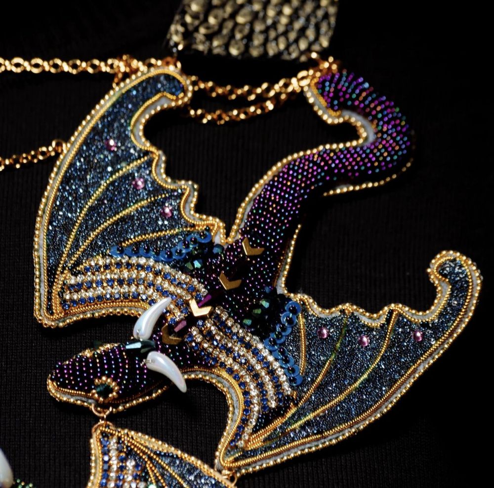 В честь 125 - летия дома Swarovski это точно должно быть что то новое, нетипичное! И не долго думая в голове возник образ дракона. Фентезийно - да! Необычно - да! Чем не новые грани сияния кристальной ткани на крыльях, драконьей «чешуи» на солнце, завораживающих взгляд драконов кристаллов на цепях? Но почему дракон? Всем нам хорошо известно что в мифологии именно дракон является защитником и хранителем драгоценностей,золота и сокровищ. Поэтому пусть символ дракона охраняет, оберегает всю красоту и уникальность Swarovski. А компания все так же процветает,словно под присмотром самых сильных древних драконов.