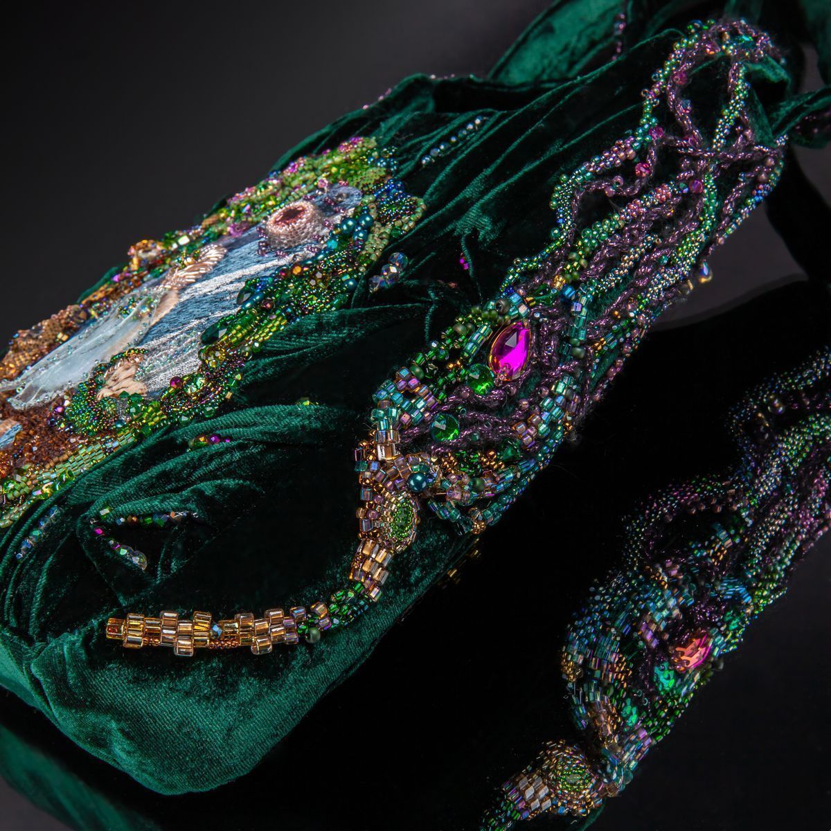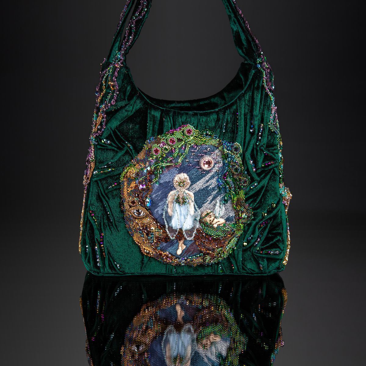 В дизайне своей сумочки хотела отразить загадочное и мистическое место в Зазеркалье, где можно встретить Фею. Фея - благожелательная волшебница, которая способна творить чудеса.