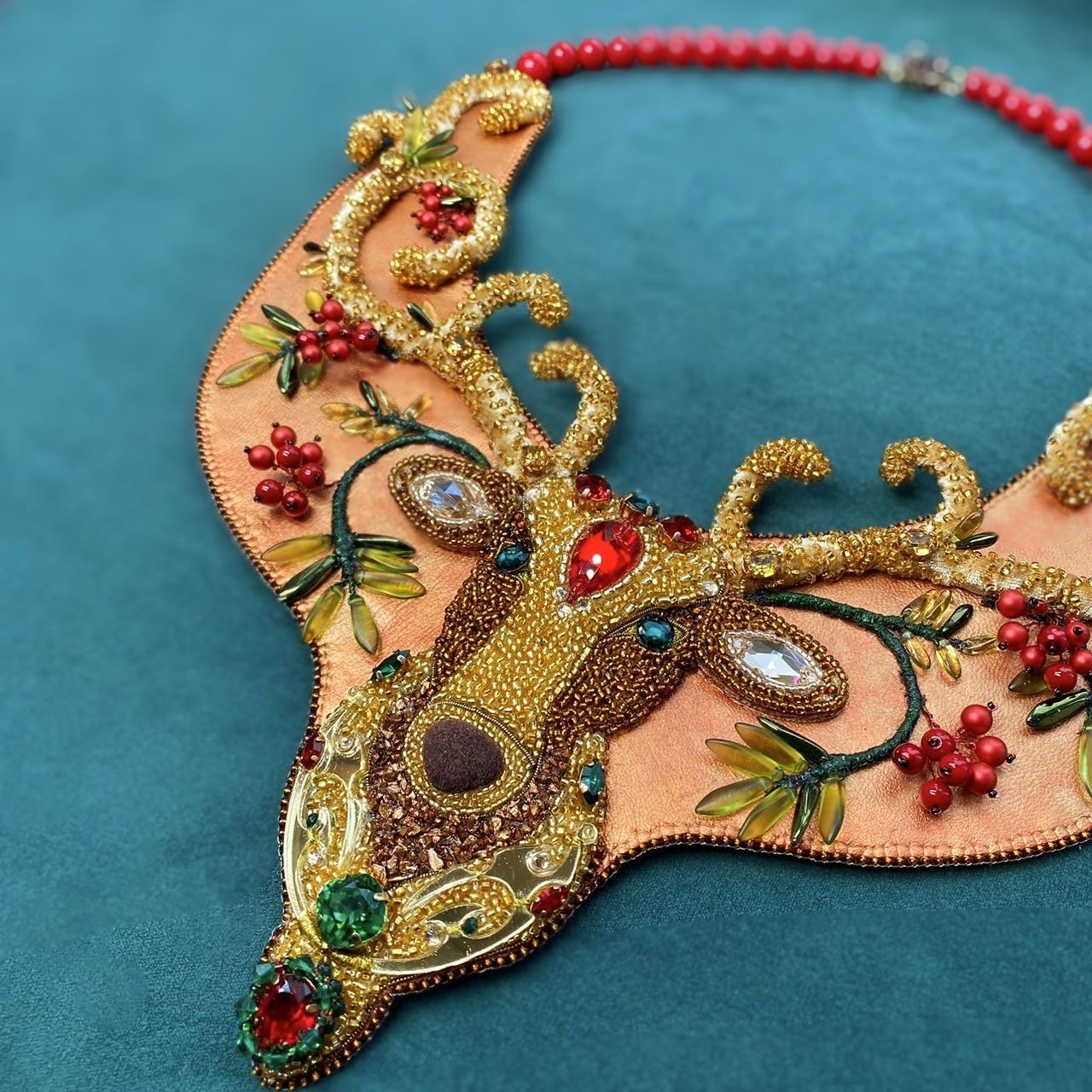 Колье "Хранитель волшебного леса" - это украшение, которое сочетает в себе гармонию природы и волшебство. Основная идея этого изделия заключается в сохранении уникальности и красоты природы, отраженной в сказочном образе оленя.