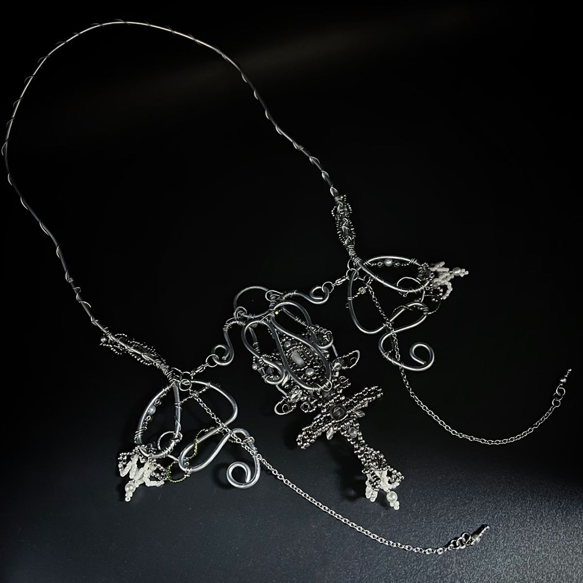 У колье 3 варианта трансформации. За счет застёжек-карабинов центральный