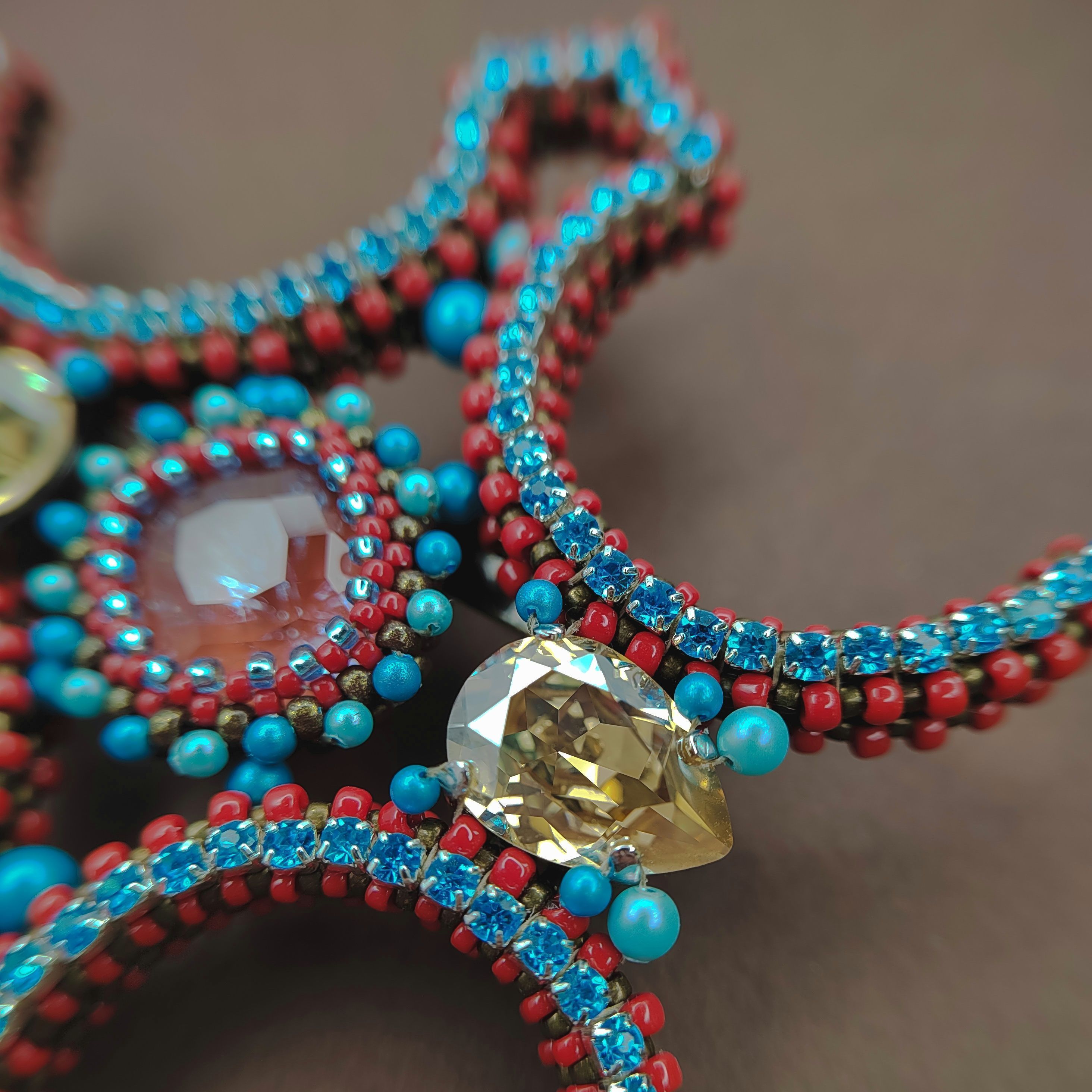 Основа конструкции броши “Алтай” – компиляция нескольких базовых паттернов традиционного алтайского орнамента. Присмотревшись, тут можно найти и зооморфный элемент – рога, и квадрат/ромб – символ стабильности и безопасности, и парные элементы, означающие дуальность природы. В своих работах я очень часто обращаюсь к народным мотивам, образам и символам. Смысл моей конкурсной работы и всего моего творчества именно в том, чтобы они оставались частью повседневного образа, вписываясь в современные стили одежды. Благодаря разнообразию современных материалов и компонентов народные мотивы легко модернизировать, не искажая. Это и есть мой способ создавать будущее, вдохновляясь традициями!