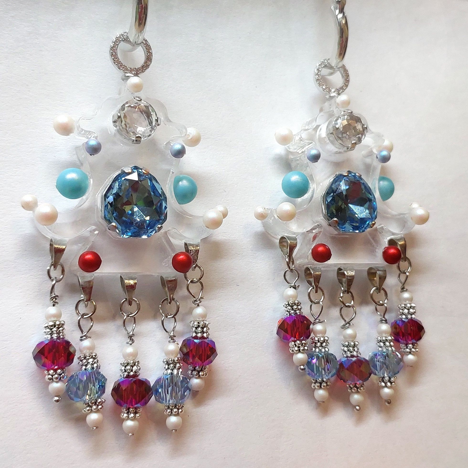 таких серег покрыты сканным орнаментом, цветной эмалью, вставками цветного