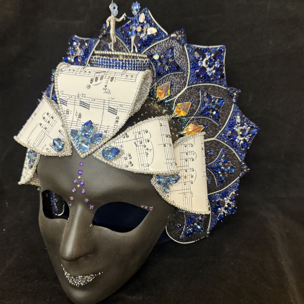 В маске использован музыкальный механизм, при заводе проигрывается фрагмент вальса «На прекрасном голубом Дунае», а фигурки инопланетян вращаются.