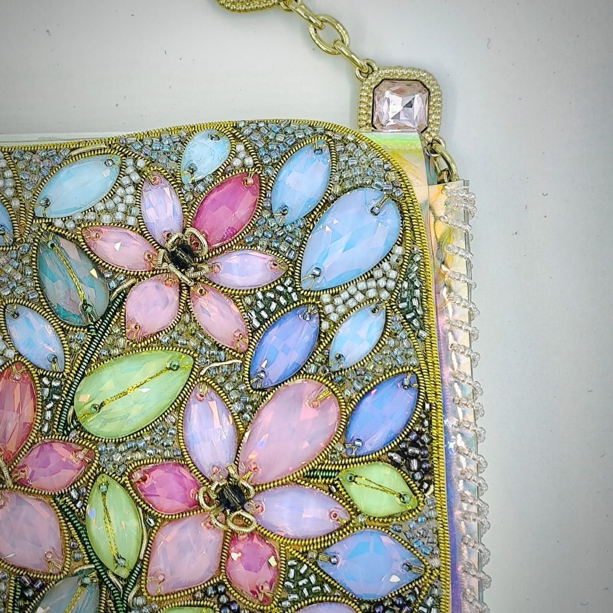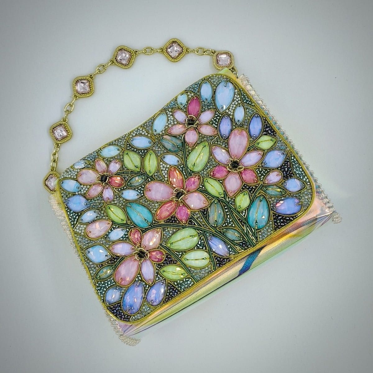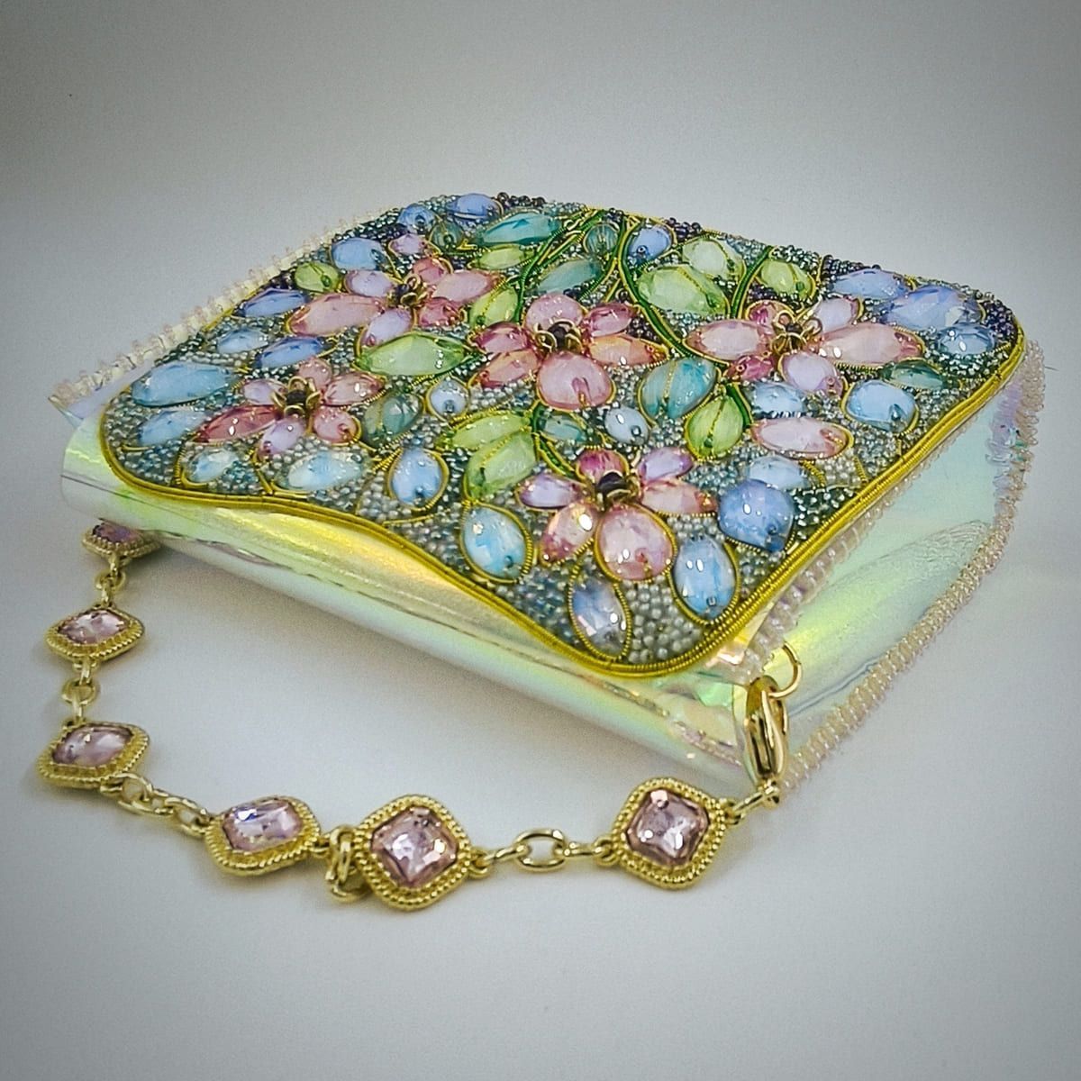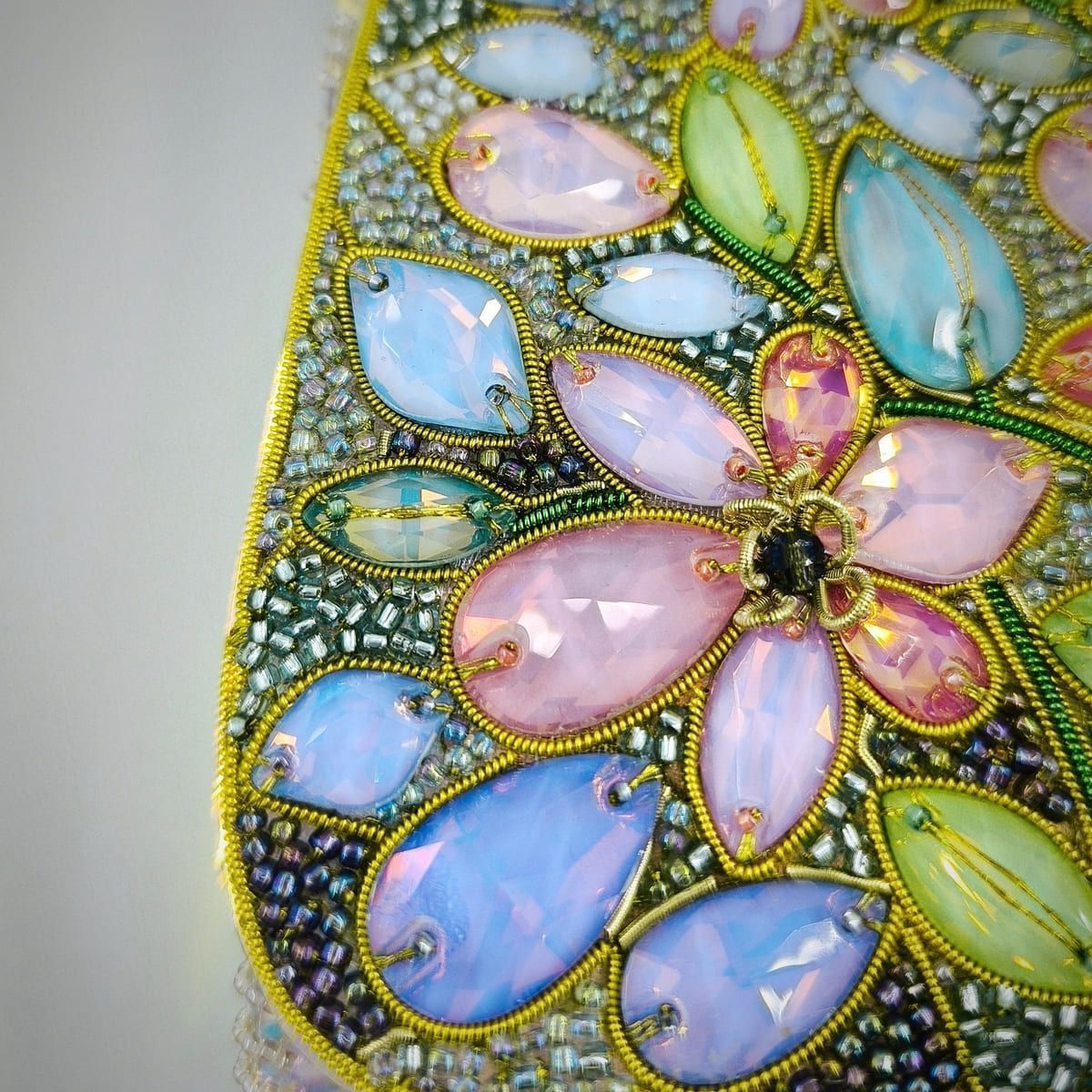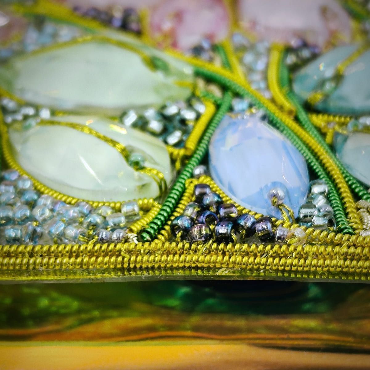 Сумочка сшита вручную, вышивка располагается на крышке.