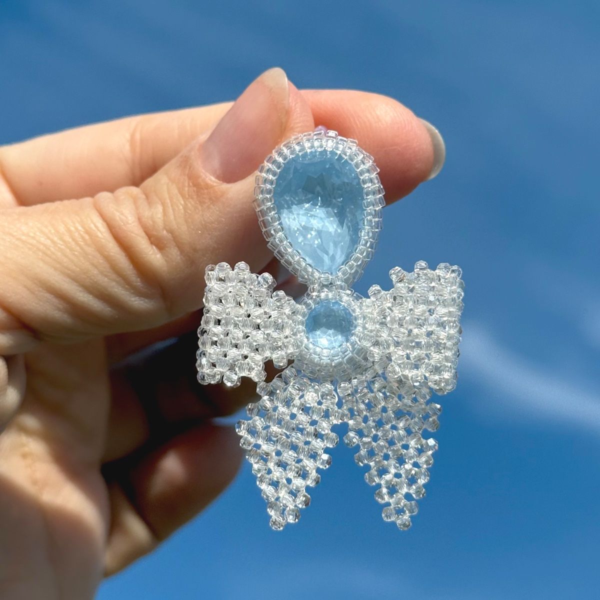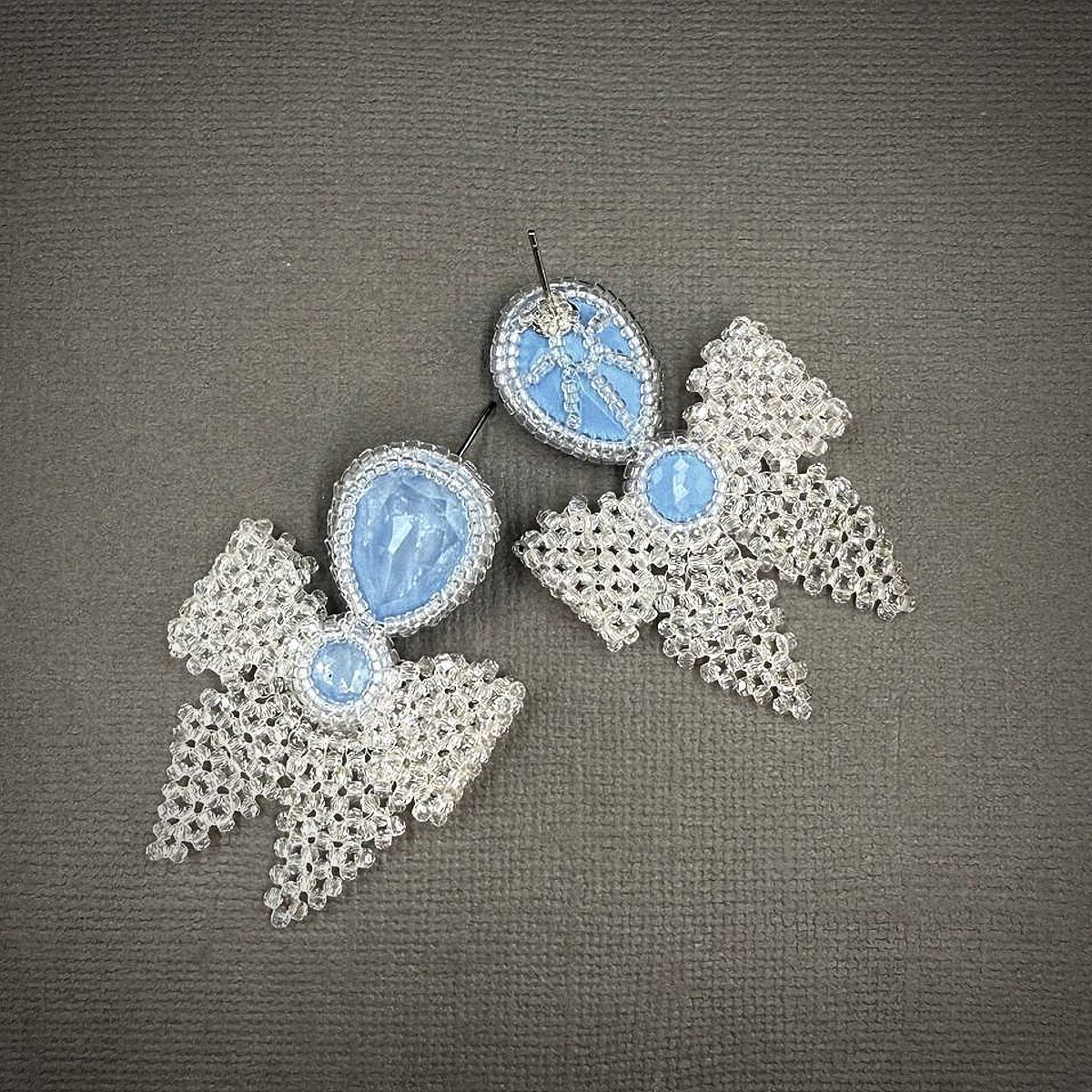 И именно для нее предназначены эти серьги, изготовленные из кристаллов Swarovski цвета Crystal Sky Ignite, напоминающих небо ранней весной, и мельчайших прозрачных бусинок размером всего 2 мм. Эти серьги при каждом повороте головы будут разбрасывать вокруг яркие искорки, привлекающие внимание окружающих. И в то же время, благодаря своей нежности, не будут затмевать красоту и молодость их хозяйки.