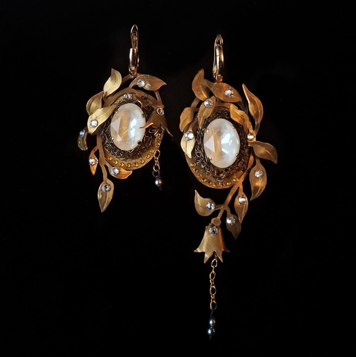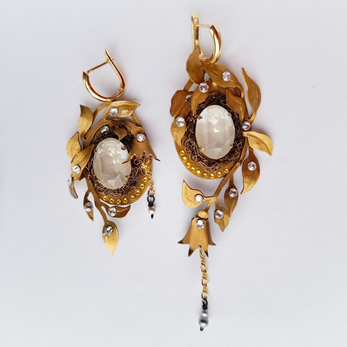 Асимметричные, притягивающие взгляд. Декоративные композиции на правой и левой серьге не повторяются, но дополняют друг друга. Совершенная классика природы, никогда не выходящая из моды.