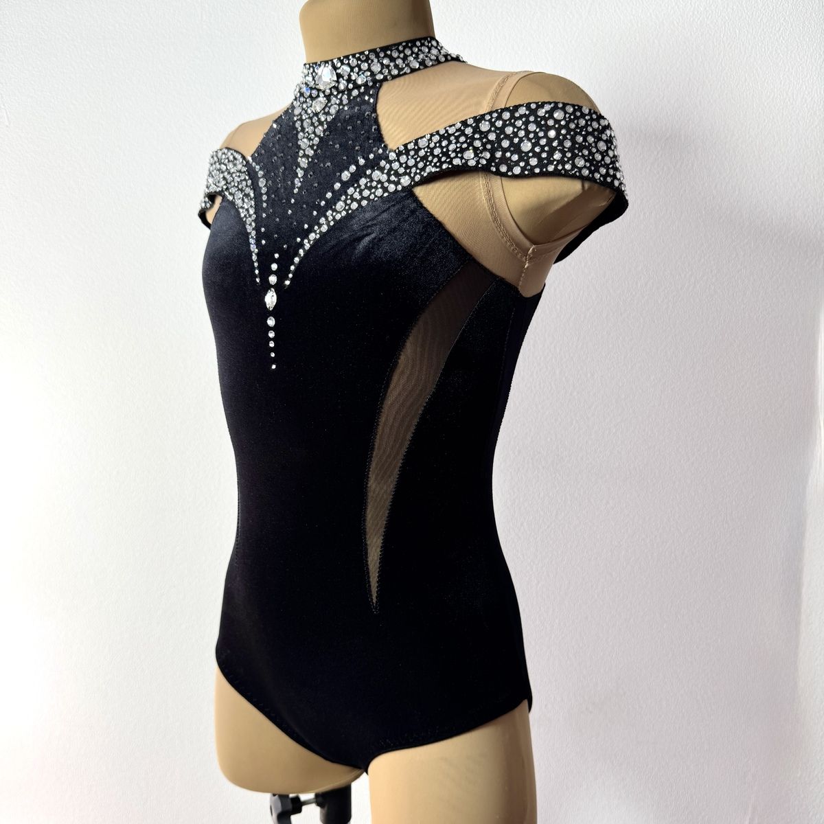 Советский фильм «Летуча мышь», снятый по мотивам оперетты Иоганна Штрауса, вальсами которого заслушивались в Вене, а позднее и в Петербурге, вдохновил на создание костюма для маленькой гимнастки. Черный бархат и прозрачные кристаллы. Роскошь и элегантность. Ничего лишнего: глубина цвета и яркий блеск камней. Классический образ вне эпох, вне времени, но всегда на вершине моды!